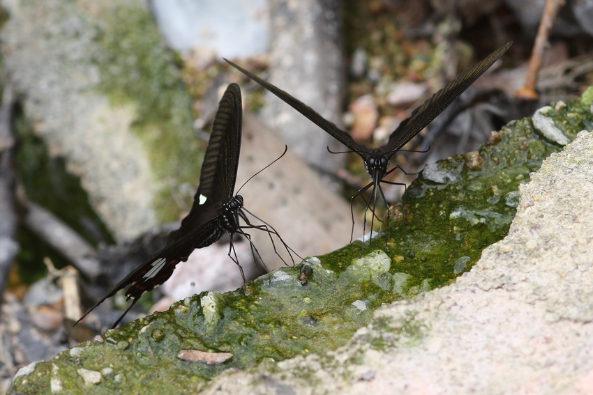 Diese beiden Papilioniden saugen an einem Abwasser-Rinnsal.