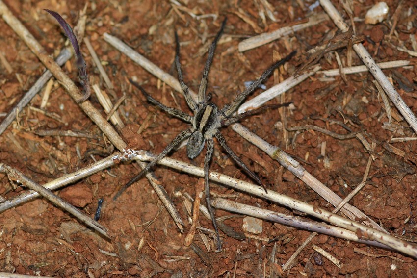 Tarantel aus der Gattung Lycosa nachts vor den Bungalows.