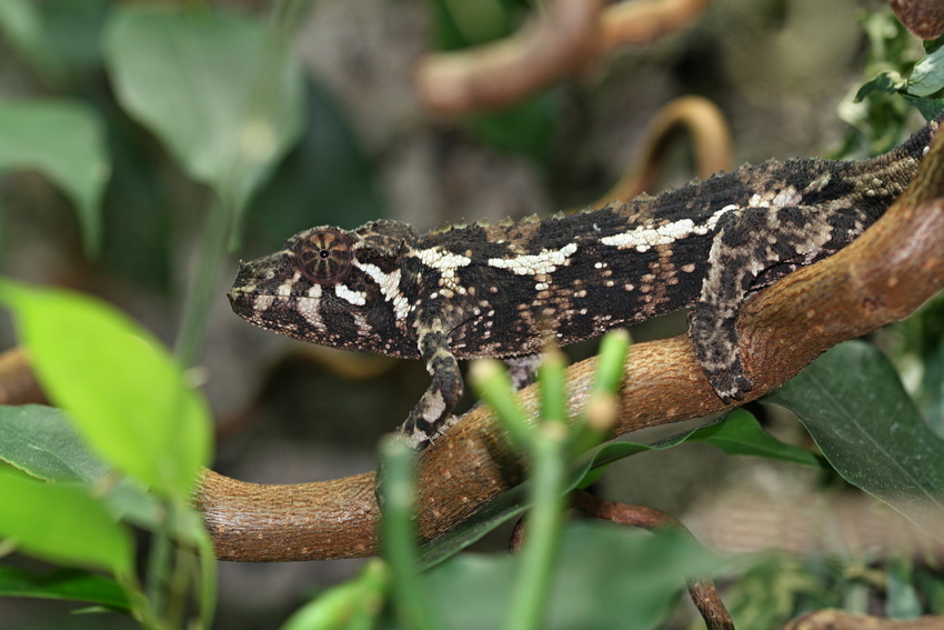 Lebensweise: Tagaktiv, typische chamäleonartige, langsame und ruckartige Bewegungsweise.