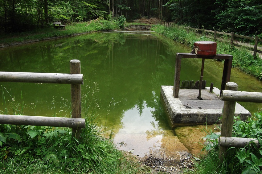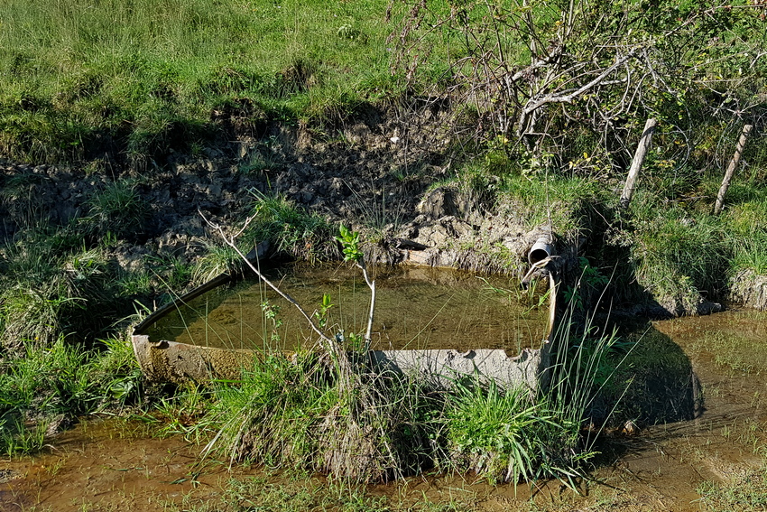 Auf der gewässerarmen Schwäbischen Alb (Margrethausen) dienen selbst solche kleinen Viehtränken als Reproduktionsgewässer des Bergmolchs.
