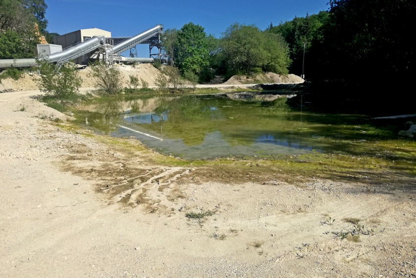 Reproduktionsgewässer von I. alpestris auf der Schwäbischen Alb (Sonnenbühl); flaches, aber permanentes Gewässer mit wenig Submersvegetation.