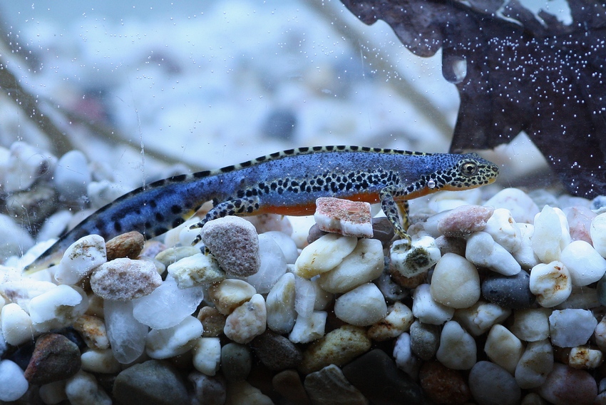 Männchen des Bergmolchs in der beeindruckenden Wassertracht im Albvorland (Waldenbuch), März 2014.