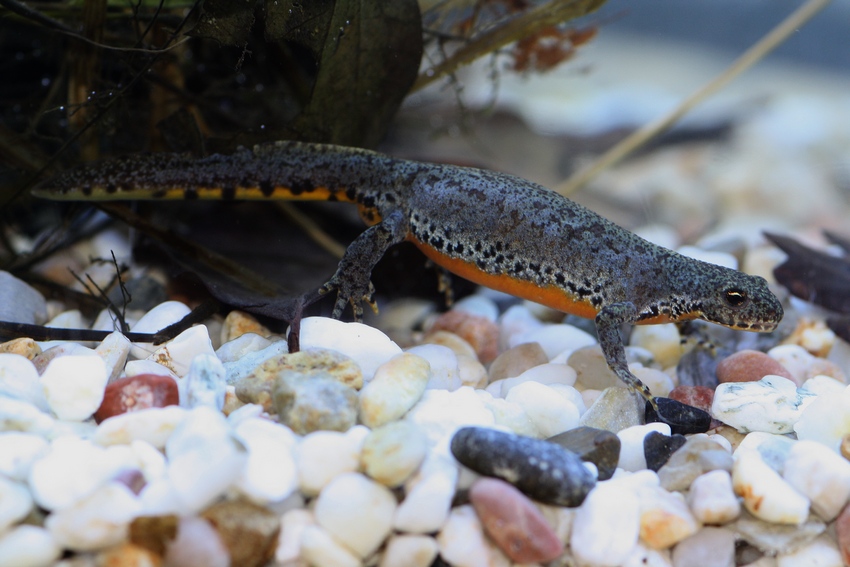 Kräftiges Weibchen des Bergmolchs in Wassertracht im Albvorland (Waldenbuch), März 2014.