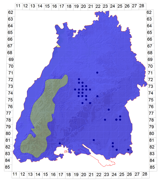 Schematische Verbreitung von L. vulgaris in Baden-Württemberg: