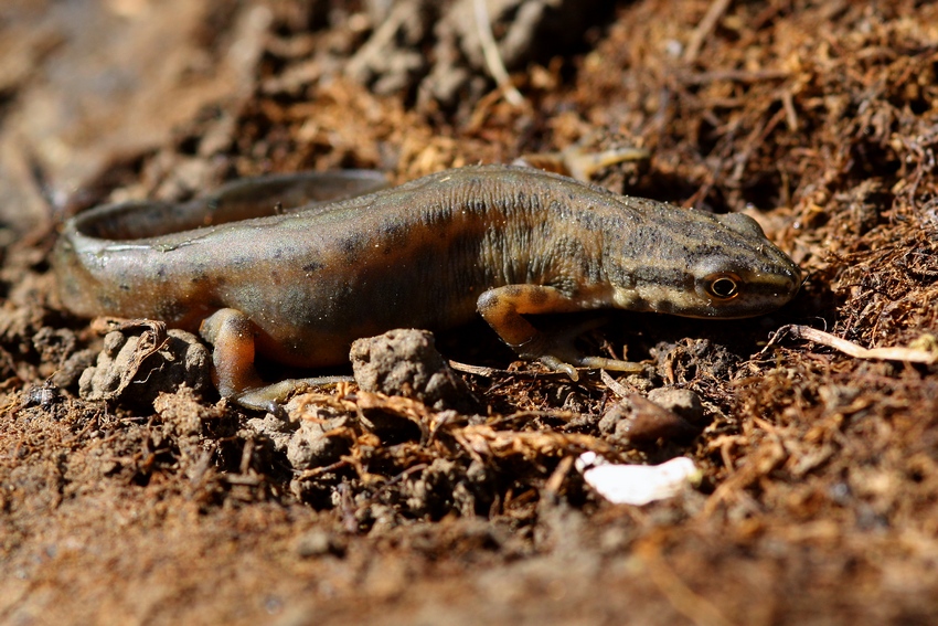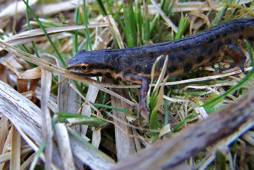 Weiterer männlicher Teichmolch in Landtracht in den Oberen Gäuen (Malmsheim), Mai 2015.