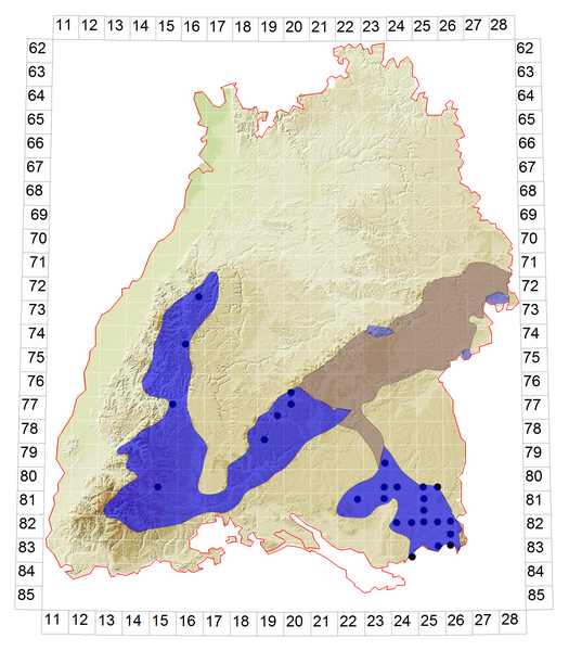 Schematische Verbreitung von V. berus in Baden-Württemberg: