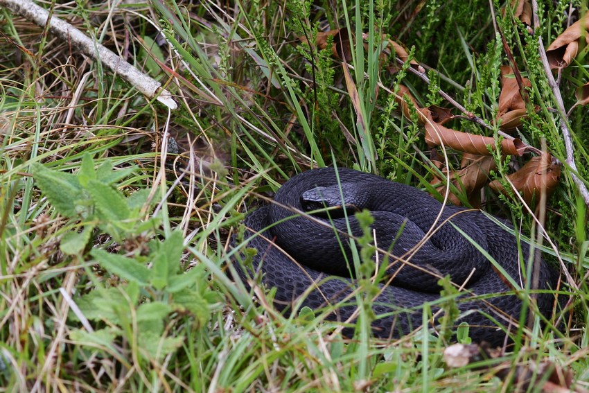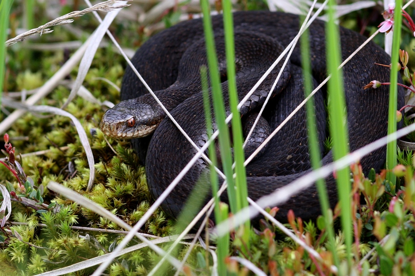 Weitere melanistische Kreuzotter im Allgäu (Isny), Juni 2016.
