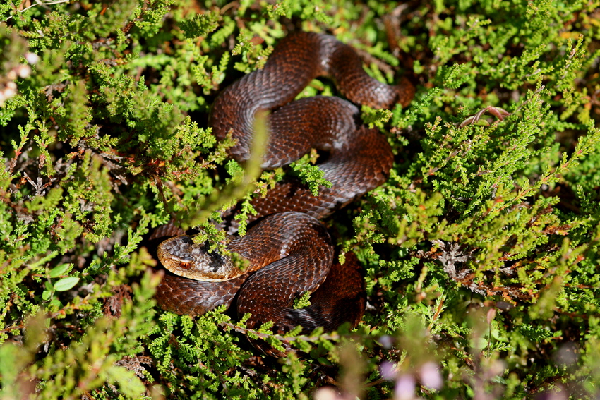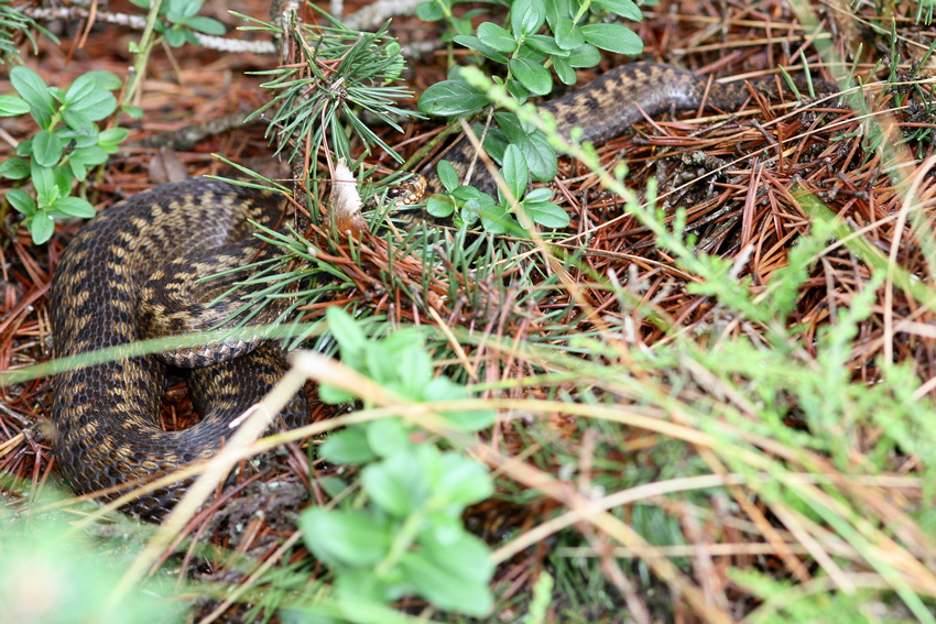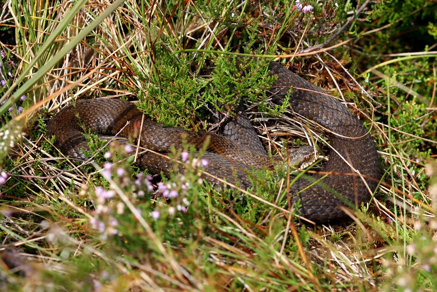 Weiteres trächtiges, normal gefärbtes Weibchen der Kreuzotter in Oberschwaben (NSG Pfrunger-Burgweiler Ried), Juli 2017.