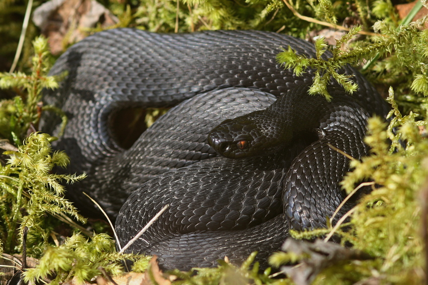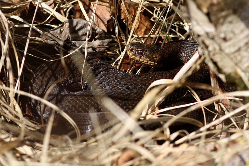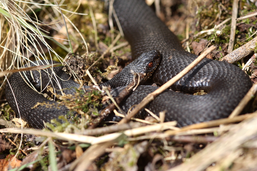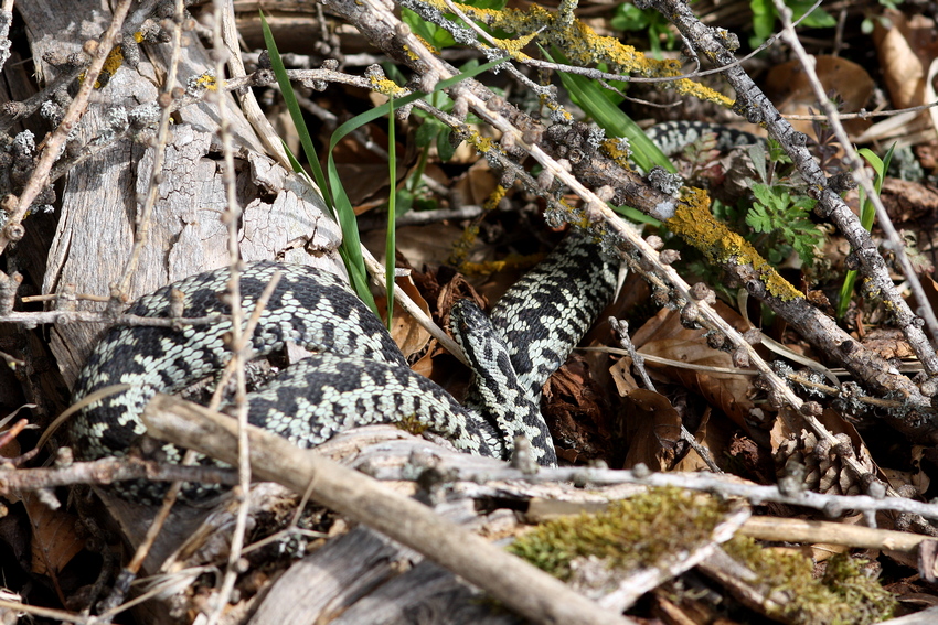 Weitere charakteristisch gefärbte Kreuzotter aus dem württembergischen Allgäu (Isny), April 2018.