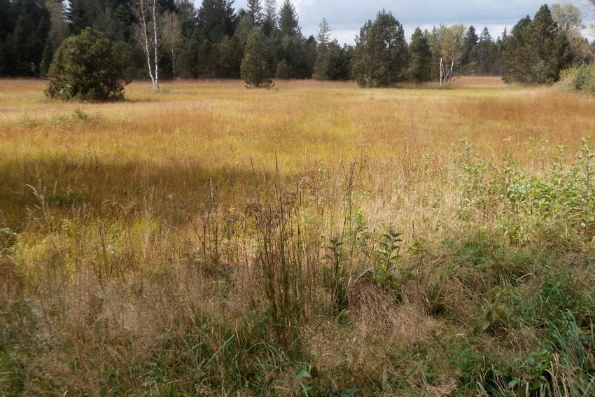 Habitat im württembergischen Allgäu (NSG Taufach-Fetzachmoos) mit individuenreichen Vorkommen der Kreuzotter; sporadisch gemähte Zwischenmoorbereiche und jährlich gemähte Streuwiesen.