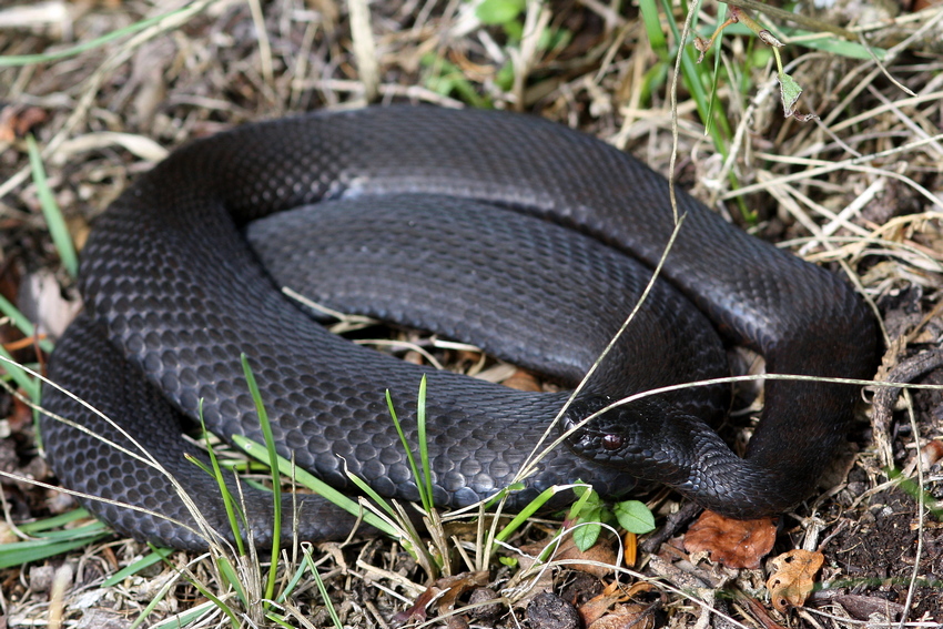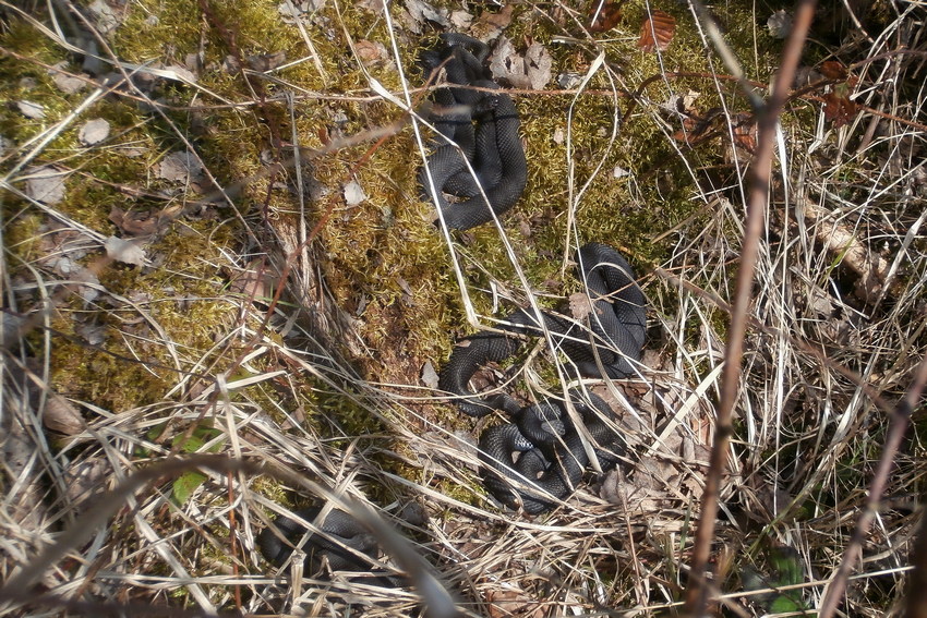 Melanistisches Weibchen beim Sonnenbad im württembergischen Allgäu (Immenried), März 2018.