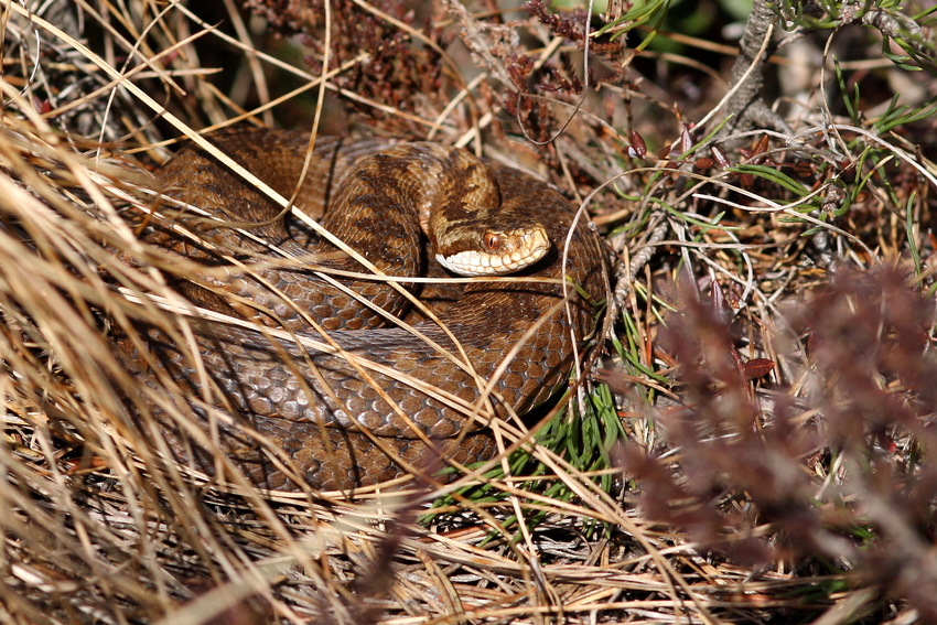 Braunes Weibchen der Kreuzotter aus dem württembergischen Allgäu (Isny), September 2016.