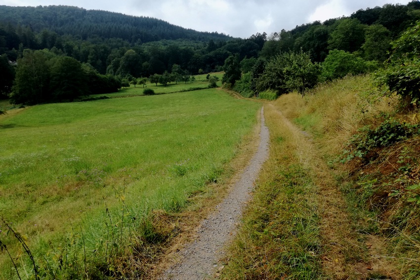 Südostexponierte Wegböschungen und extensiv genutztes Grünland als Habitat der Äskulapnatter.