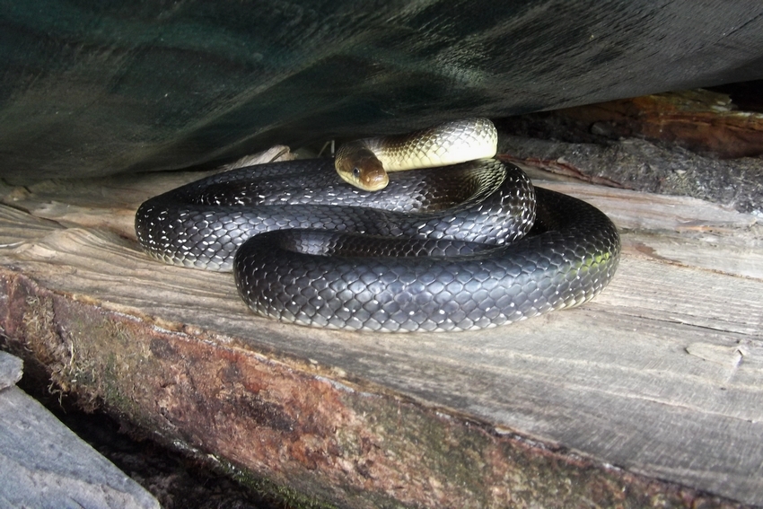 Weiteres Weibchen der Äskulapnatter im Versteck, Mai 2013.