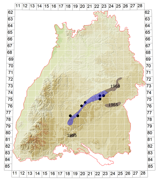 Schematische Verbreitung von Z. a. elegans in Baden-Württemberg: