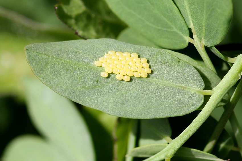 Frisches Eigelege des Elegans-Widderchens am nördlichen Albtrauf (Mössingen-Talheim), Juli 2016.