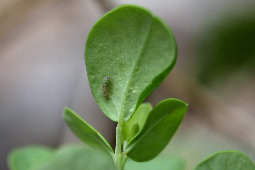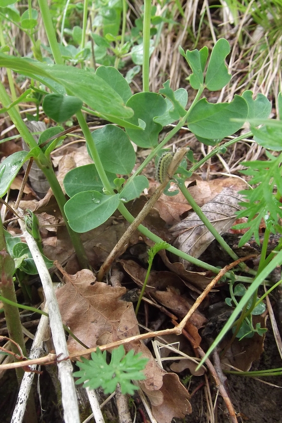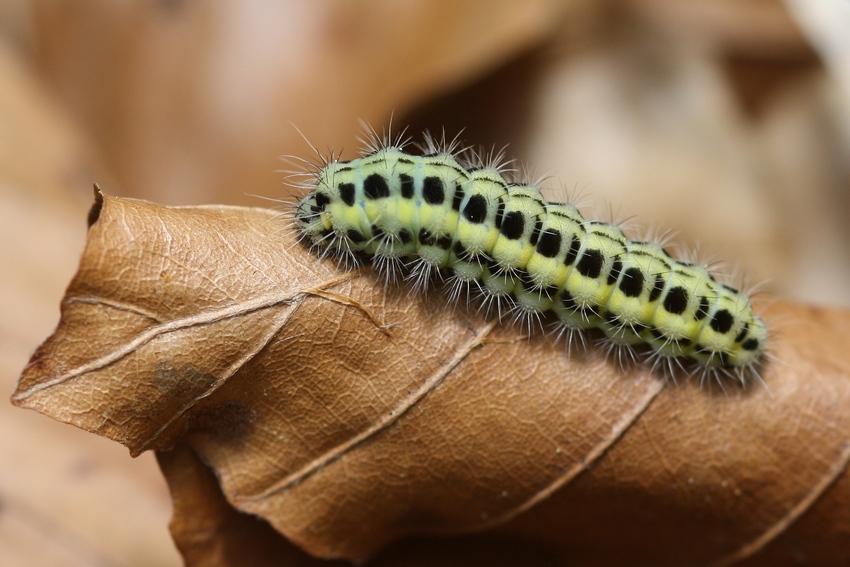 Weitere Raupe an ihrer Wirtspflanze am Albtrauf (Bad Urach), Mai 2013.