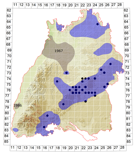 Schematische Verbreitung von Z. carniolica in Baden-Württemberg: