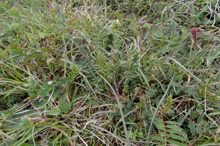 Aufsicht auf das Larvalhabitat des Esparsetten-Widderchens am nördlichen Albrand (NSG Filsenberg); magere Vegetation mit guten Esparsetten-Beständen.