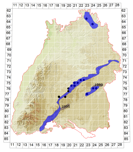 Schematische Verbreitung von Z. fausta in Baden-Württemberg: