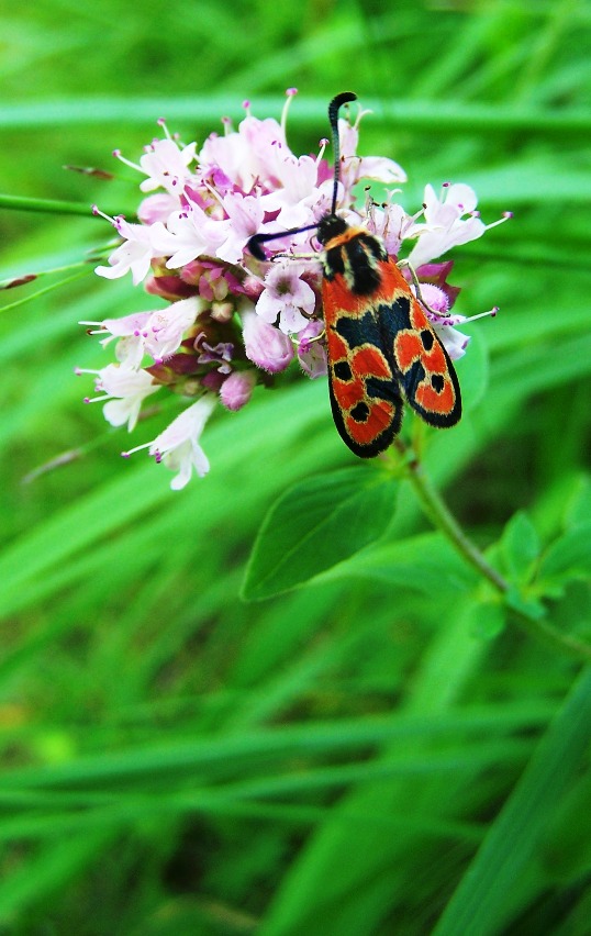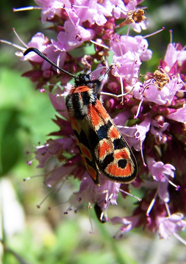 Weitere Z. fausta an einer der bevorzugten Nektarpflanzen, dem Dost (Origanum vulgare) am Albtrauf (Pfullingen), Juli 2009.