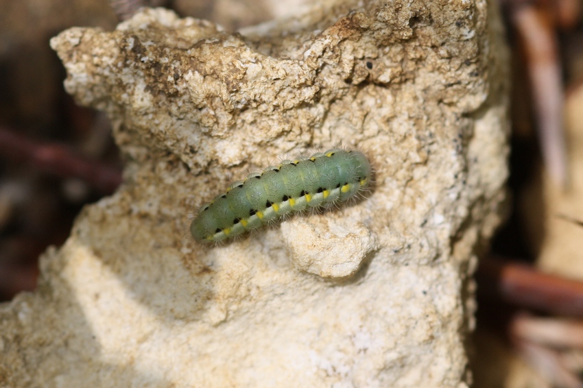 Sich sonnende Larve von Z. fausta am Albtrauf (Hülben), Mai 2013.