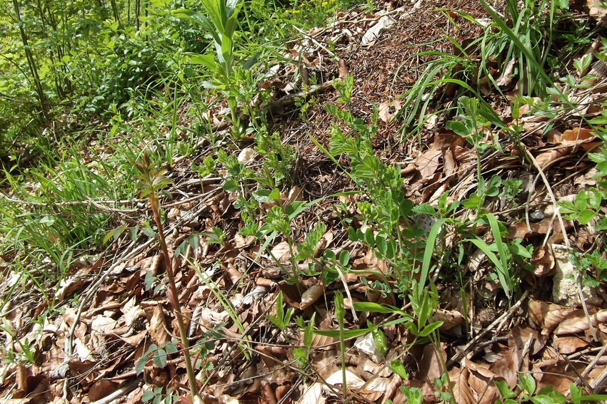 Ungewöhnliches Larvalhabitat: von Raupen besetzte Berg-Kronwicken direkt neben einem Waldameisenhaufen am Albtrauf (Hülben).