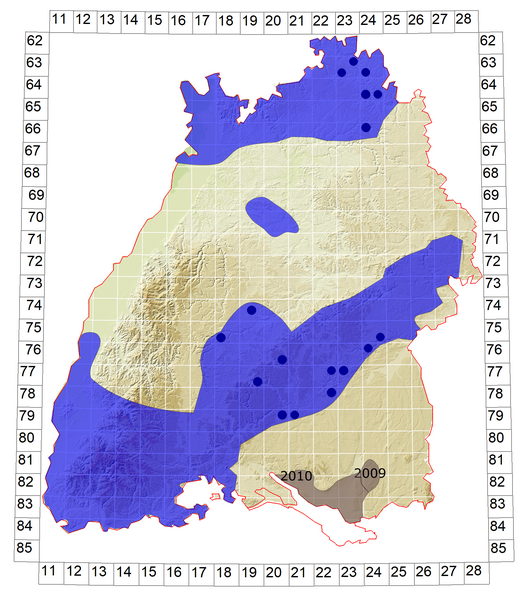 Schematische Verbreitung von Z. transalpina in Baden-Württemberg: