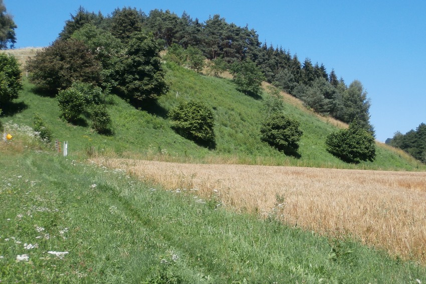 Weiteres Habitat des Kleinen Fünffleck-Widderchens in Oberschwaben (Owingen), ein beweideter Drumlin mit Halbtrockenrasen-Elementen.
