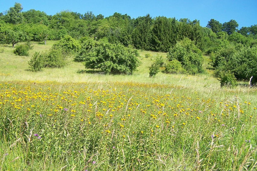 Blütenreicher, verbrachter Streuobsthang mit Halbtrockenrasen-Elementen im Albvorland (Weil im Schönbuch), Habitat von Z. viciae.
